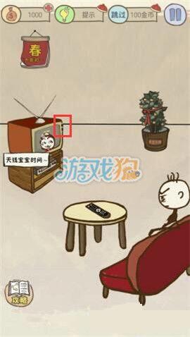 点击下图标注的地方,是电视机的开关,然后坑爹男就会走过去把电视给关了。单身汪看什么春晚,洗洗睡吧。