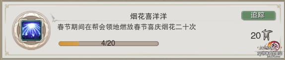 这个成就是要右击点燃帮会领地一进门的那个跟莲花宝座一样的烟花才可以完成的成就,而不是随便买点烟花在帮会领地放了就能拿到的成就,帮会的春节喜庆烟花位置: