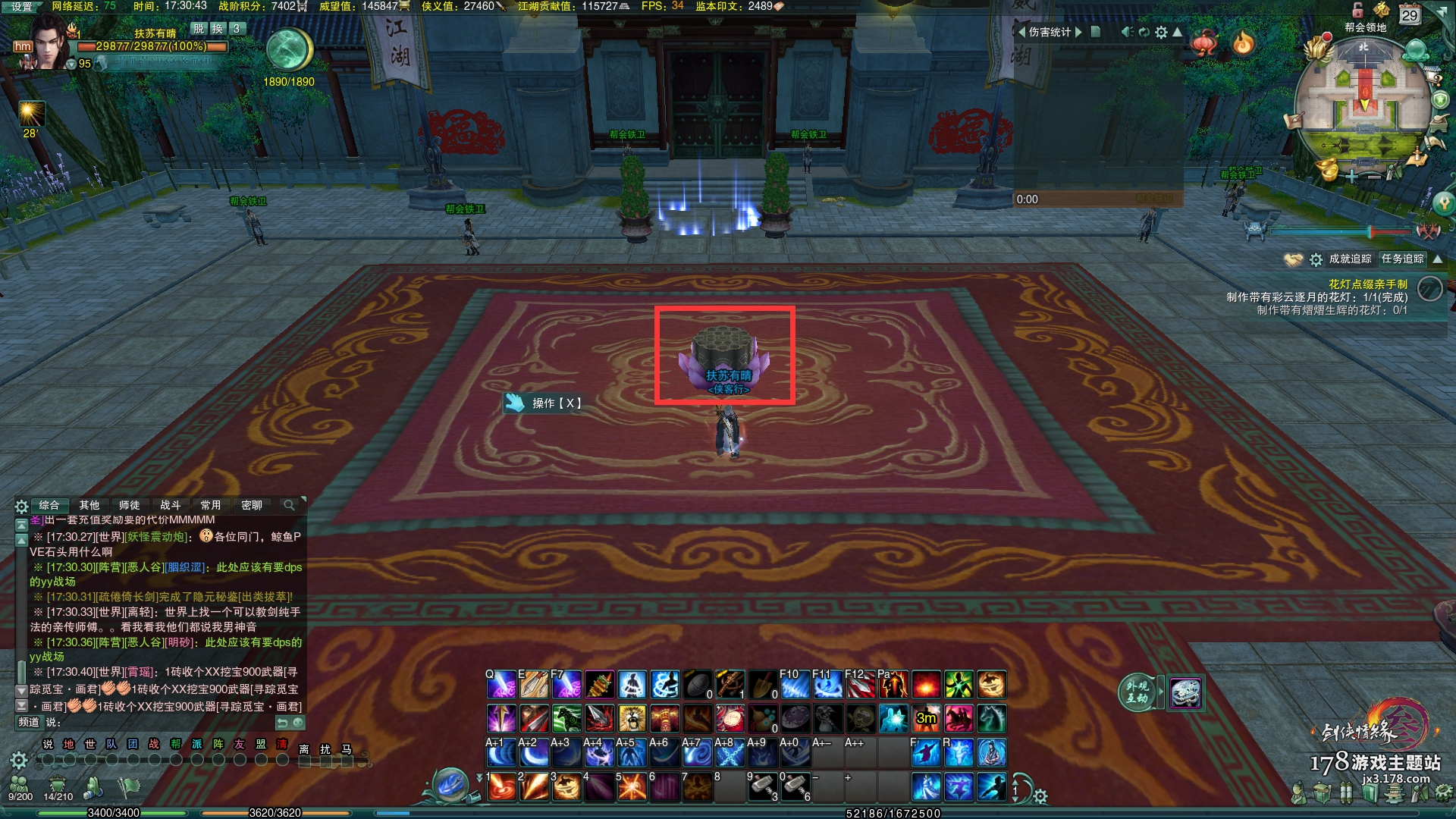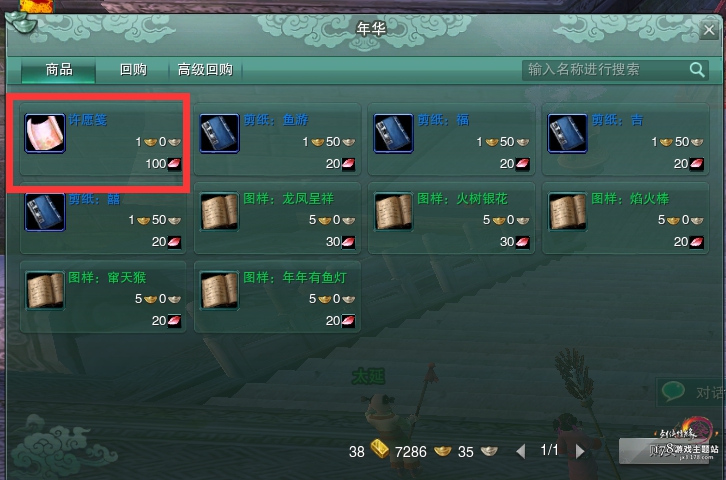 这个成就首先我们要准备好花灯和许愿笺(jiān),花灯在玉女倒影那里买,记住这个任务只能用三种基础花灯,许愿笺是无法贴到蓝色合成花灯上的,什么熠熠生辉这个灯,彩云逐月那个灯的都不能贴,所以买就买三种基础花灯,自己挑,我就不重复截图了。