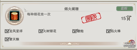 这个只要把列表里列出来的每一种烟花都放一边就可以拿到这个成就了,首先这些烟花在砸罐子的过程中都是有一定几率获得的,所以不用特定去买,只要砸到了然后燃放就可以拿到这个成就。