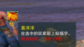 给其他人贴了喜洋洋之后,对方脸上就会粘着一个倒着的福字: