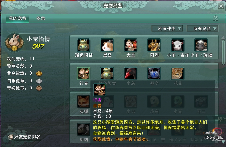 这个成就只要看我微博或者B站昨天的砸罐子攻略,换取到跟宠猴子行者之后,不停的召唤收回再召唤再收回,反复10次即可完成这个成就,默认打开宠物界面是Ctrl+P键,然后找到行者宠物召唤即可: