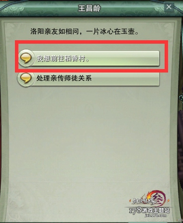 首先说一下怎么会稻香村,先到扬州的再来镇旁边的敬师堂找到王昌龄,然后选择我要回到稻香村即可: