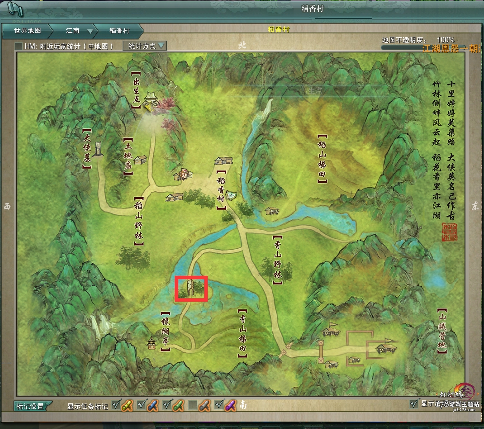 这个成就要找到帮户领地的何维对他使用喝动作,如果大家找不到他可以打开大地图在右上角的搜索位置输入何维进行搜索,我也给大家在地图上标注出了清楚的位置: