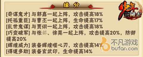 奇谋鬼才:与郭嘉一起上阵,攻击提高18%