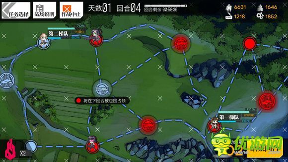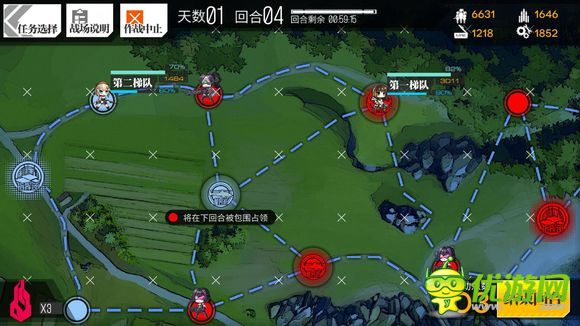 主力梯队占住机场完成补给,二梯队完成任务回退一格避战