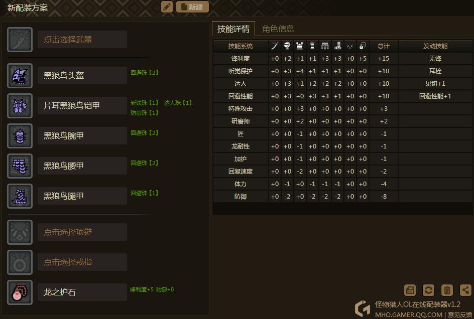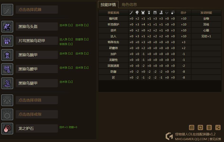 ps2: 护石也可以选择回避性能6-7,衣服砸斩铁出无锋,当然根据自己条件来~ 回避与斩铁谁贵....