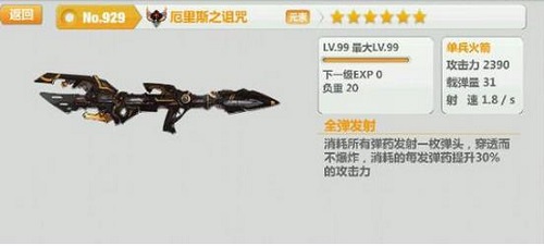 消耗所有弹药发射一枚弹头,穿透而不爆炸,消耗的每发弹药提升30%的攻击力。