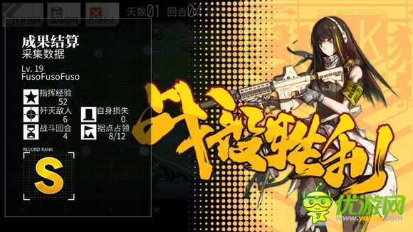 四回合内消灭六个目标即判定为S~