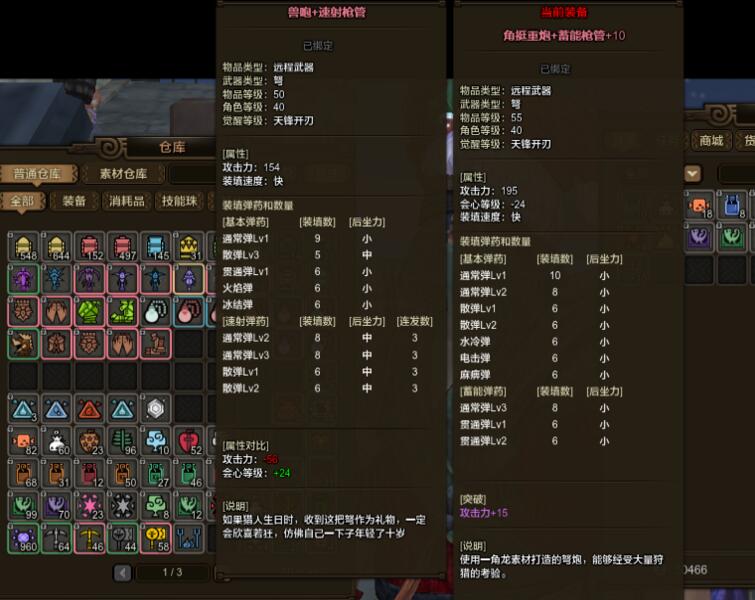 新出的三件武器,我感觉我可能会出一把神机火,速射贯通,连发3,相对于冬眠的连发2伤害还是比较可观的,其他两件,感觉远远不如目前的装备,暂时我可能也不会考虑出。