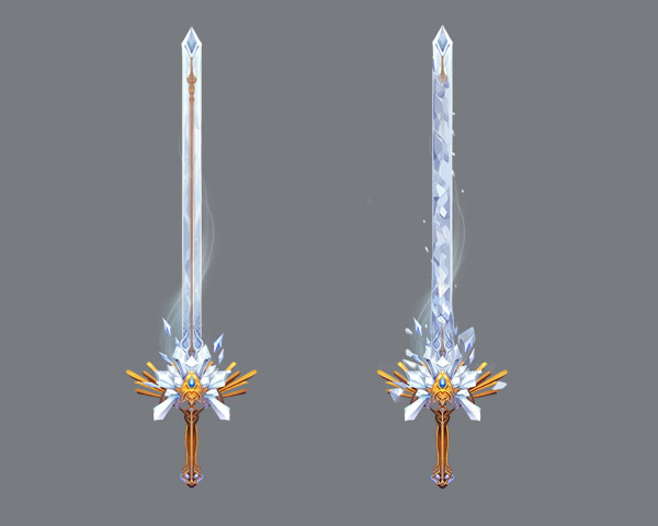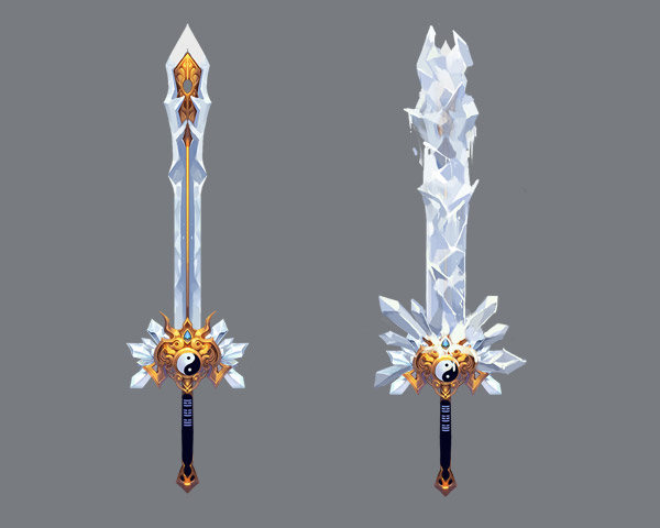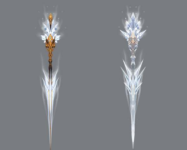 送上太初玄兵设计图(右侧为武器的冰霜攻击特效)