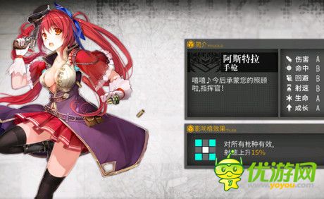 属性:伤害a、命中b、回避b、射速b、生命a、成长a