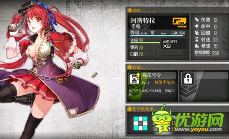 技能:突击号令 Lv.1 触发率42% 提升己方梯队15%射速,持续2.0秒。