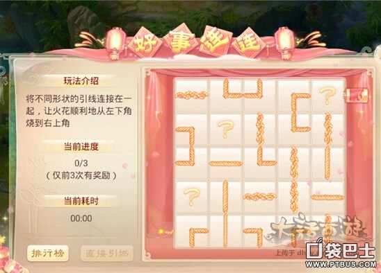 三,好事连连奖励界面左边可以看到小游戏的时间计时,完成任务耗时越短获得奖励越丰厚。并且该玩法只有前3次有奖励。之后可以参与但是无奖励赠送。玩家也可以点击界面排行版查看自己的游戏排名。排名越高可以获得一定称号。