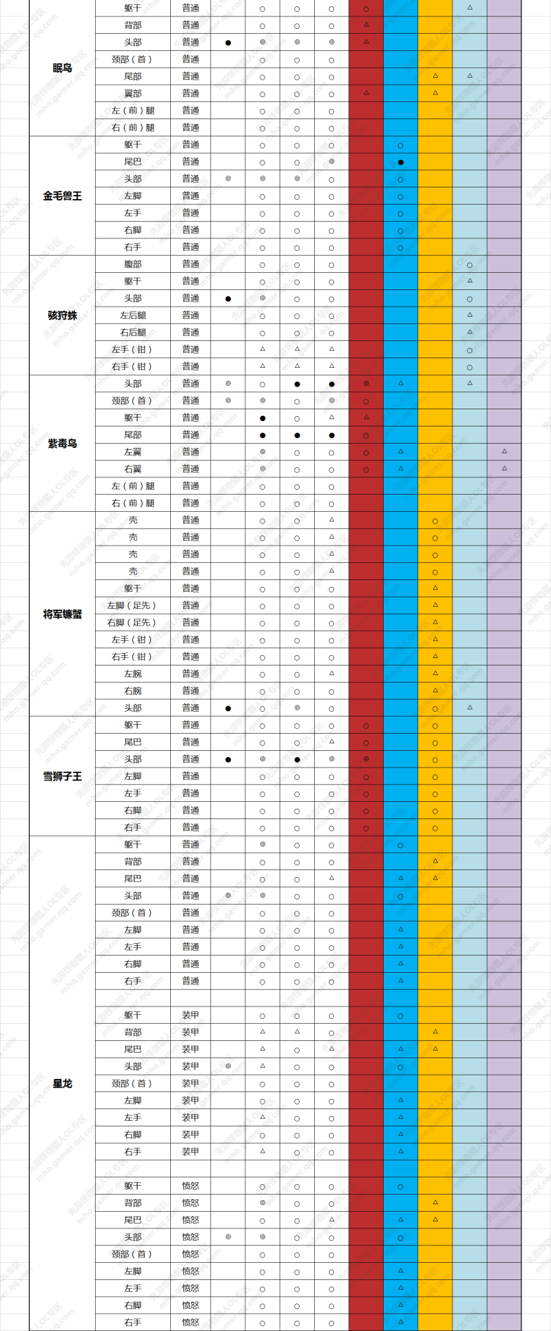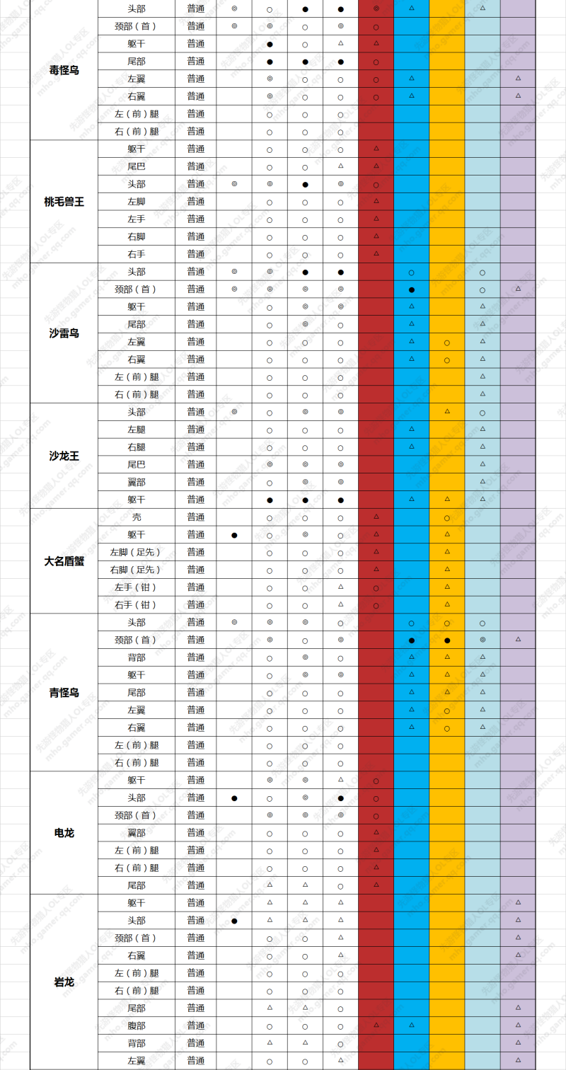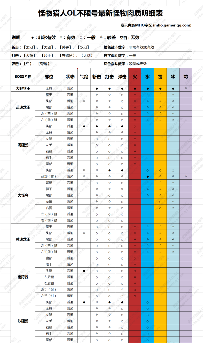最近怪物猎人OL开启不限号测试,对于广大怪物猎人玩家终于能够体验到PC上打怪的乐趣,很多玩家问到怪物弱点的相关问题,下面是弱点列表大全,大家可以收藏起来以备使用。