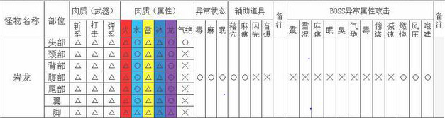 喷射火光:岩龙会钻入地底移动到地图一段,在把头部暴露出来喷射出直线型火焰,被这个躺倒会很痛还伴有灼烧效果。可惜的是岩龙不吃音爆弹啊没办法把它从地底弄出来,所以只能看好它钻地后的泥土走向然后跟着输出吧。如果实在没能跑到身边那就用飞扑躲避喷火。