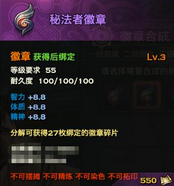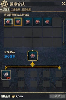 与其对话选择“[1]徽章合成 ”功能后打开徽章合成界面,1级徽章需要消耗3个徽章碎片进行合成。1级徽章增加1项人物的基础属性,5枚1级徽章分别增加体质、力量、智力、精神、敏捷,大家可以根据自己的需求选择对应属性合成。