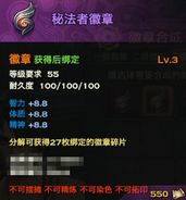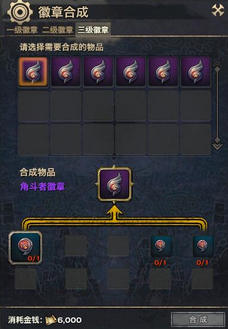 同理,3级徽章需要由3枚对应的2级徽章方可合成,可增加更多人物基础属性,同时提升一定的基础属性数值,具体合成界面及属性示例如下图。