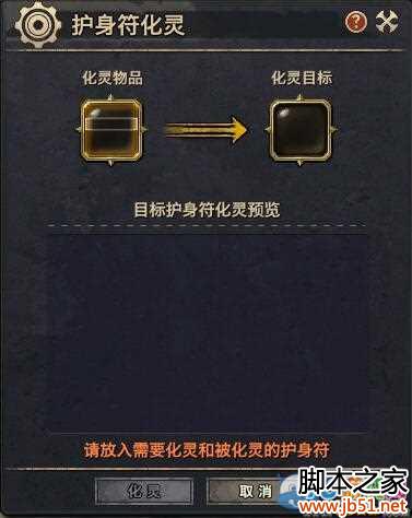 依次放入目前已经培养过需要淘汰的护身符和新获取准备培养的极品护身符,界面上可预览新护符转移经验后的属性变化,化灵后如新护符经验达到激活属性要求,数值会在新护符初值范围内随机生成,确认化灵后,点击化灵消耗少量云币后即可使原有护身符的注灵经验转移覆盖到新护身符上,化灵成功后,目标护身符将自动变为绑定装备。