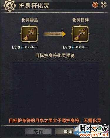 3化灵为经验转移而不是等级转移,由于各品质护身符所需升级经验不等,所以化灵后目标护身符等级由其获取的化灵经验决定,而非与源护身符等级相同。