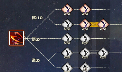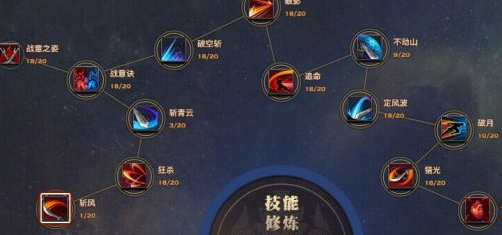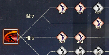 修炼点紧张的小伙伴可以不点破甲延长,但是无双获得增加一定要点,在1V1中飞羽往往能起到绝地大反击的作用,左系无双攒的快不快是关键,而不算血站绝这个技能,小技能里破影的第一次攻击瞬间就能攒大概10点,后面每下一点,是小技能里攒起来最快的技能,所以要点出