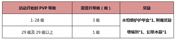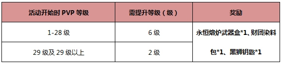 活动内容:活动期间,账号PVP等级提升达到以下要求,可获得相应奖励。