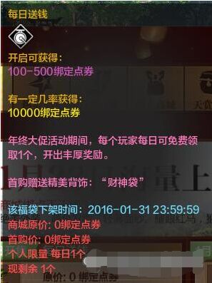 活动一:23-31号期间,每日上线,领绑定点券,可以说是福利。