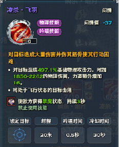 此无双技能虽然在PVE毫无用处,但是在PK中非常实用,因为它可以封印技能3秒,无法使用技能的敌人在光刃面前只有被蹂躏的份。更重要的是这个技能射程20米,一旦光刃被敌人拉开距离,可以用此技能封技能,再突进。