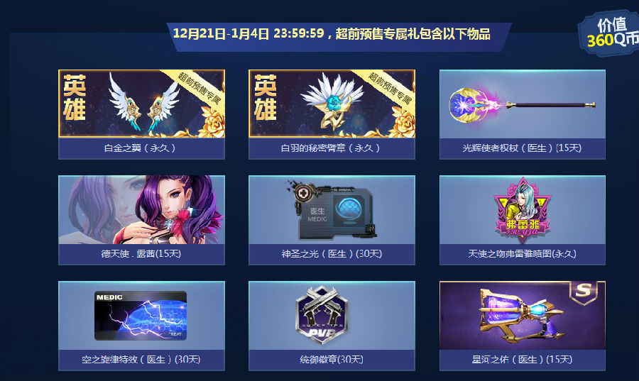 本活动属于超前预售。时间为12月21-1月4日23:59。在超前预售时间内,预购成功的用户将获得专属奖励:首发英雄饰品2件。且超前预售时间内。享受超前优惠408Q币。