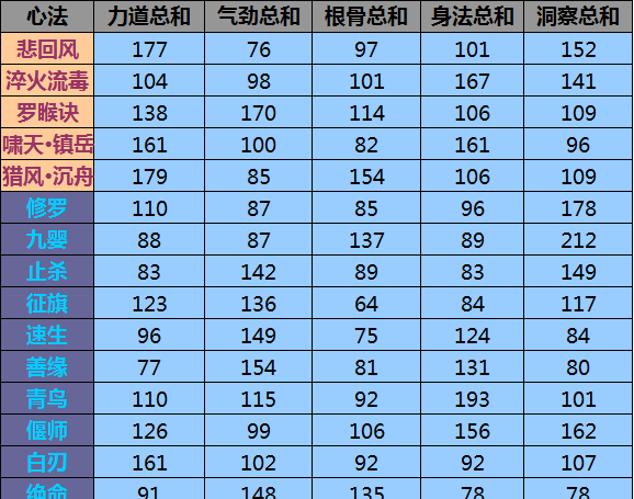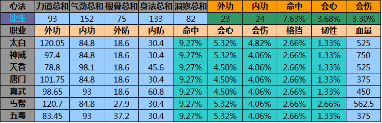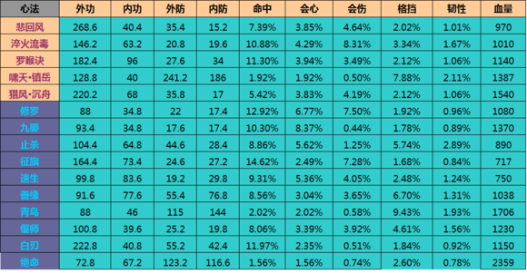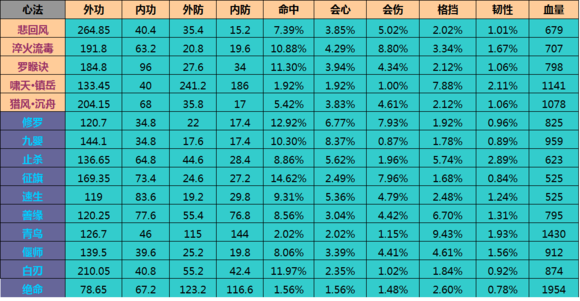 然而看一本心法的加成,必须把所有属性,按照每个职业的加成公式算下来,才知道好不好。