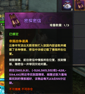 答:是的,在玩家挖到了想要的情报,这时候右击使用情报,会有任务提示。接取任务,防卡点回到地图入口,对着任务npc交任务,并接取下一轮密探任务。 密探任务每天3次,并且不能一次性接取,也就是说玩家需要至少来回三次的,嗯呐,, >>详细