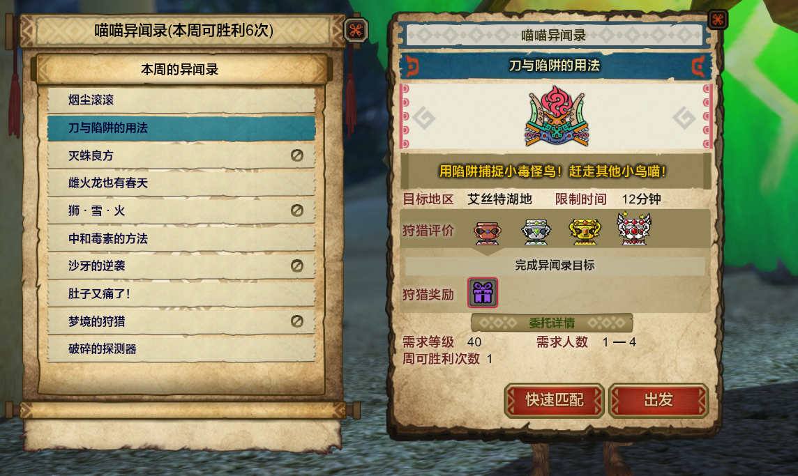 喵喵异闻录、飞艇空战、千狩试练、水龙之战。这些创新玩法让玩家在传承自掌机的狩猎生活之外有了新的奇遇。