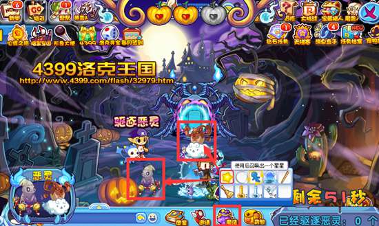 洛克王国驱逐恶灵 得经验果实奖励 万圣节到啦,邪恶的恶灵们想要跟着其他幽灵一起进入洛克王国,快来驱逐他们吧!还有经验果实等奖励送给你!