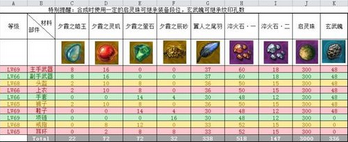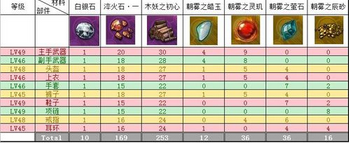 55级-64级金装合成部件所需材料预览