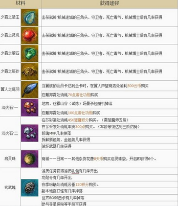 55级-64级金装合成部件所需材料出处
