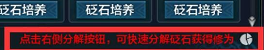 首先怎么分解,打开砭石库,右下角有如图字样按图操作,分解砭石可以获得修为。