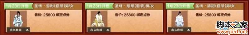 1.全新外装三套:“圣绣·雪影”、“圣绣·琅琊”、“圣绣·清甜