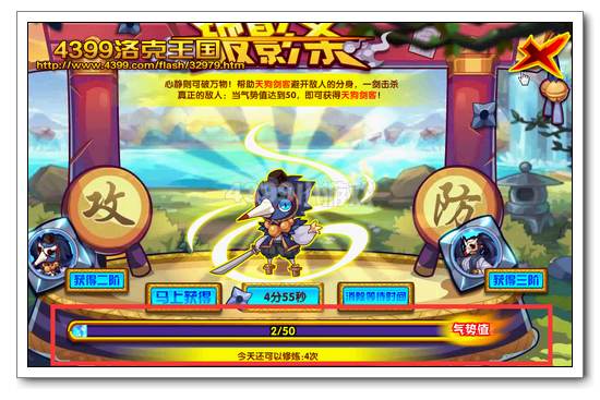 累积到50点气势值就能带走天狗剑客。或者可以选择花费200洛克钻马上获得。