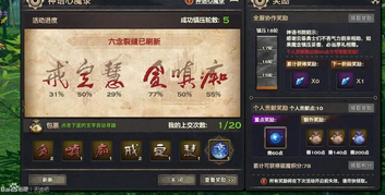 最后,每个副本都会爆出相应的副本物品,如贪念。这个东西,可以去李晟睿那里换礼包,也可以上缴他旁边两个书卷那里。增加全服的镇压轮数(满一定轮数可以领东西),而且上缴之后可以增加个人积分,可以领东西。友情提示:建议别去换礼包,楼主换了礼包,就拿了云券。积分还不够领取个人奖励。不说了先去哭一会!