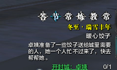天涯明月刀冬至暖心鸡蛋饺子任务怎么做?瑞雪丰年暖心饺子任务中,卓姨让你送鸡蛋饺子怎么做?鸡蛋饺子要送给谁好?