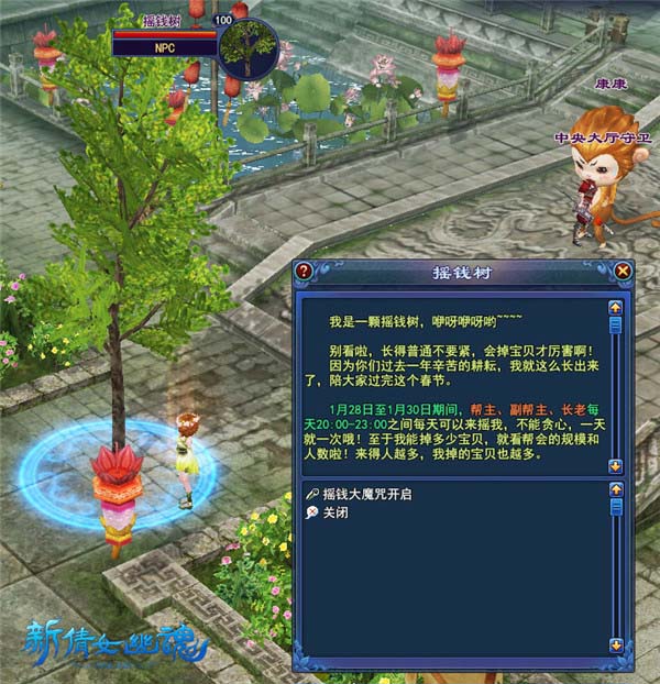 图12:猴年春节特别礼物,帮会摇钱树每天掉落,内含格物、功勋、帮贡等