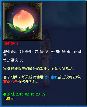 2016年2月1日起,至2016年2月16日,每天上线10分钟后,就可以在帮会城市的帮会厨娘处讨一份新年红包,也可以通过猴年大使前往紫禁城,向舞狮领班侯年发讨一份新年红包。
