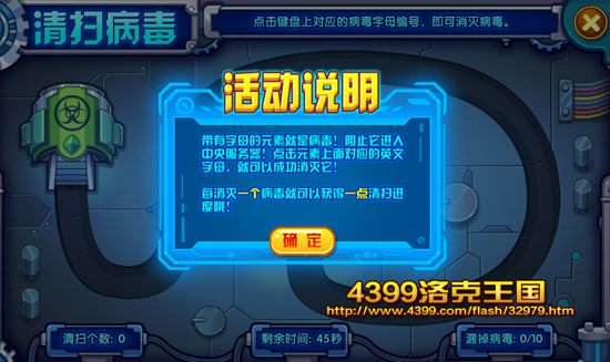 每局有60s的时间,且有10条命,如果漏掉10个病毒,让其进入中央处理器就会gameover哦!