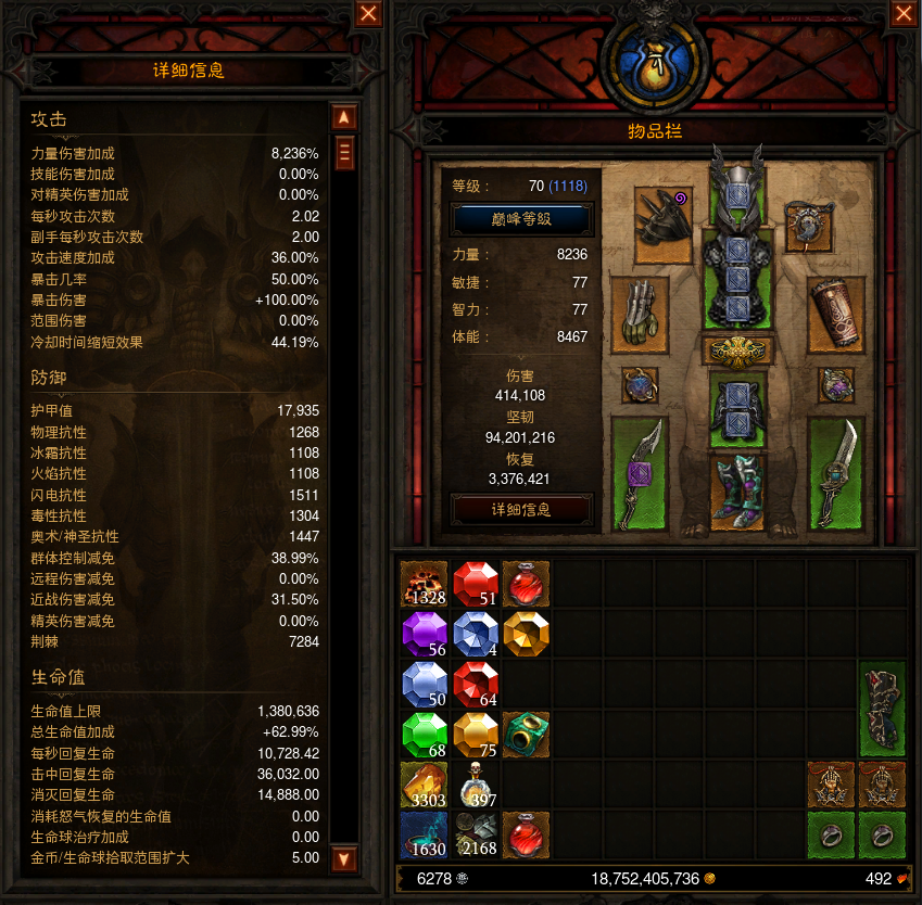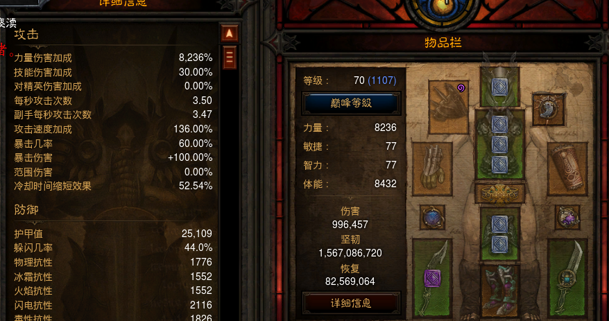 2:对剑攻速面板达到3.5,算上先民护腕 50%攻速。。 已经超过每秒5下的极限。怪堆一秒五锤嗨的不行 全身攻速词缀富裕,不需要无脑堆!下图是战斗状态下攻速面板!