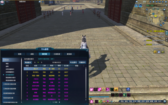 全区排名。前面基本都是些金装精工满的。有好多全身金装才8000功力的,心疼
