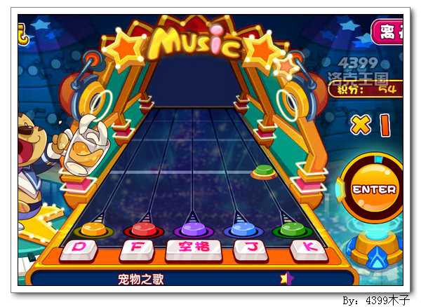 4、活动玩法:在键盘上打出轨道上出现所对应的字母,最好是在字幕移动到按键地方的时候再按下,那样获得的分数最高哦~