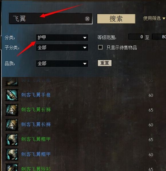 武器类目下搜索