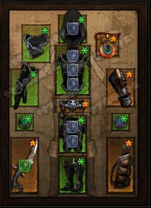 装备:对戒+6暗影+刀扇匕首+刺穿腰带+艾利曲/冰免/飞升+6词缀箭袋/圣尖箭袋