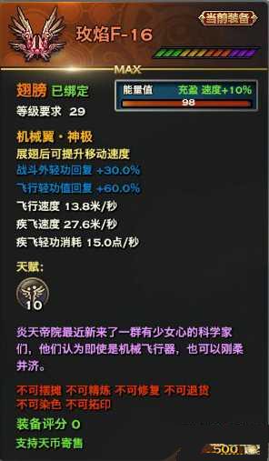 相关问题:谁知道天谕玫焰F-16神翼怎么获得?