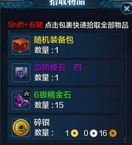 碎银3次下来有10金左右,另外注意一下击杀偷袭小怪会掉落箱子,在撤退之前检查一下掉落,会有6级精金石的奖励